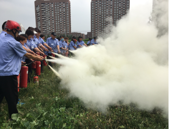 参培人员进行初起火灾扑救的演练