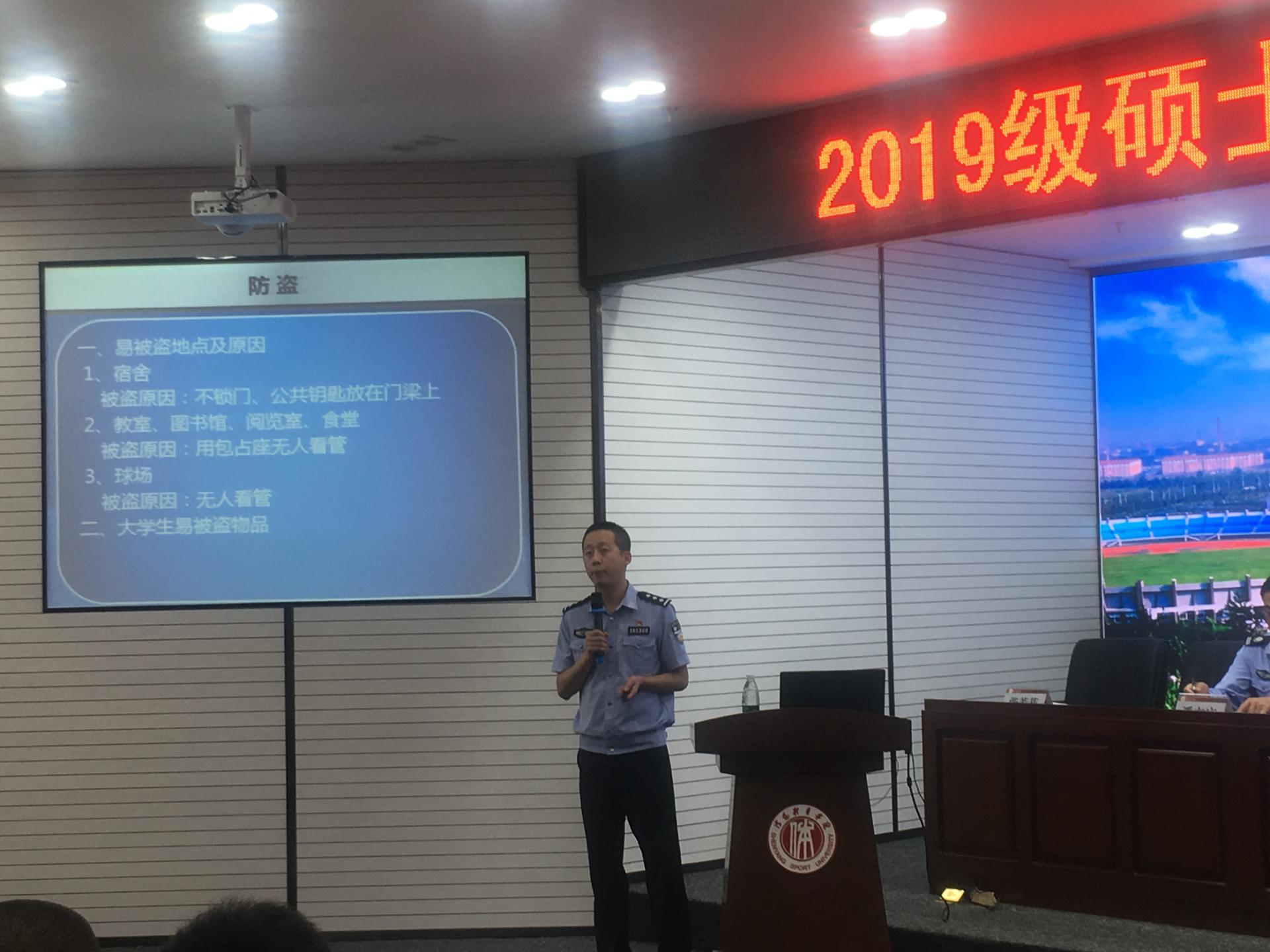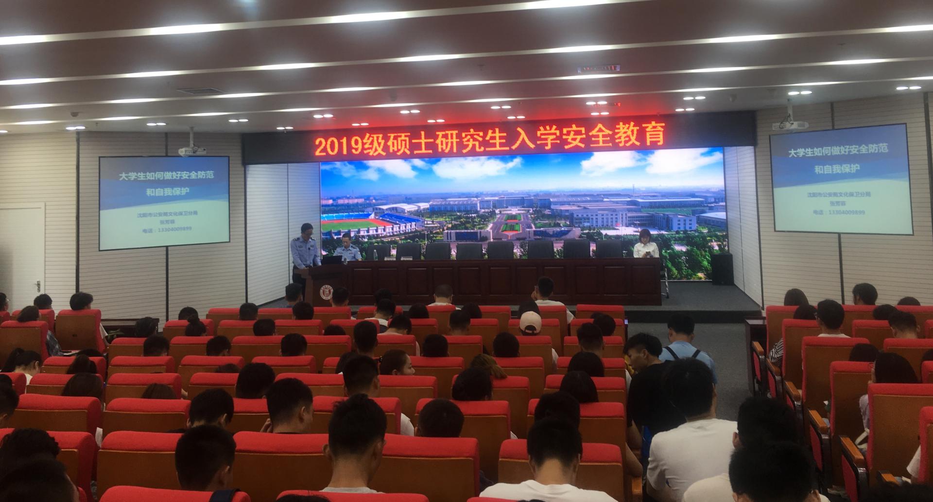 为提高新生安全意识,增强安全防范能力,8月29日上午,保卫处邀请沈阳市公安局文保分局三大队大队长张芳菲警官在学校图书馆二楼报告厅为2019级研究生做安全教育讲座。