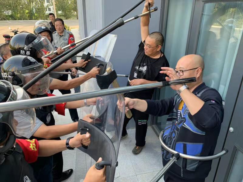 会后,综合治安科科长张天宇对反恐防暴器械的使用进行培训;保卫处副处长潘文广组织全体安保人员进行反恐防暴应急演练。