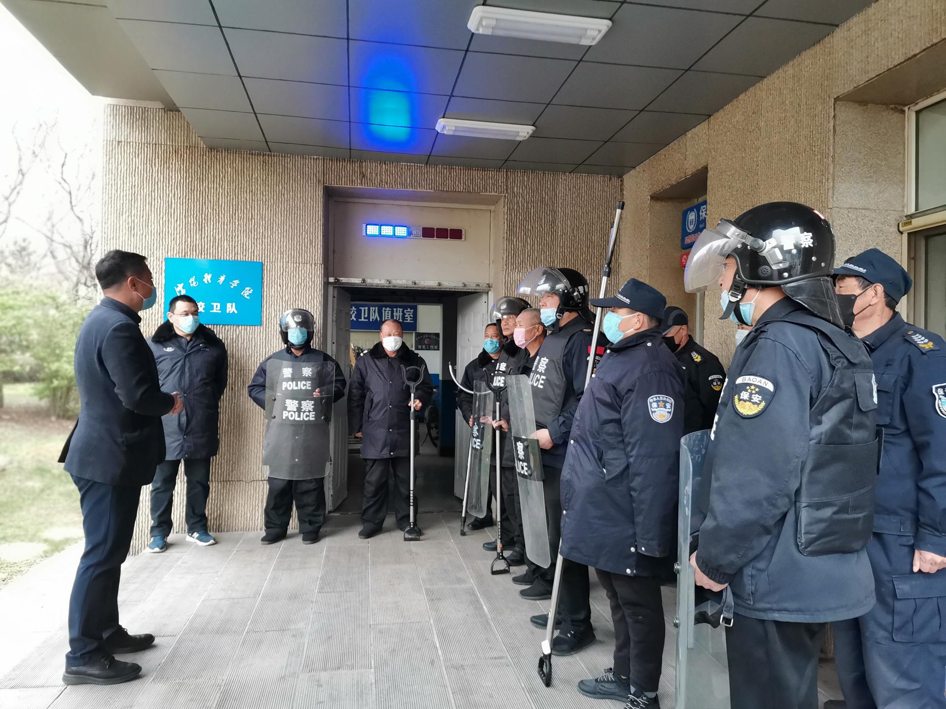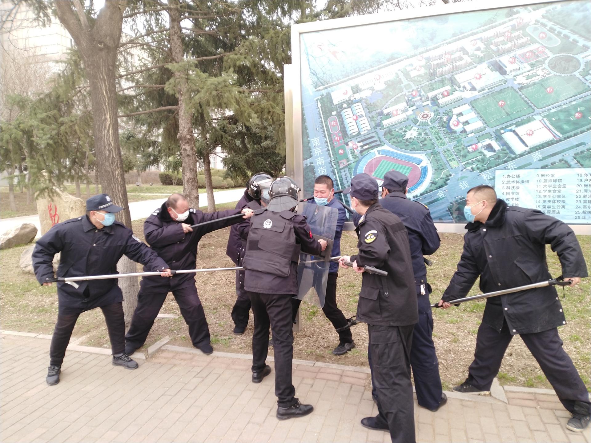 为进一步做好防疫期间安全防范工作,应对开学后校园封闭管理的需求,有效处置应急突发事件。4月21日,保卫处在学校南门进行了防疫期间反恐防暴应急实战演练。