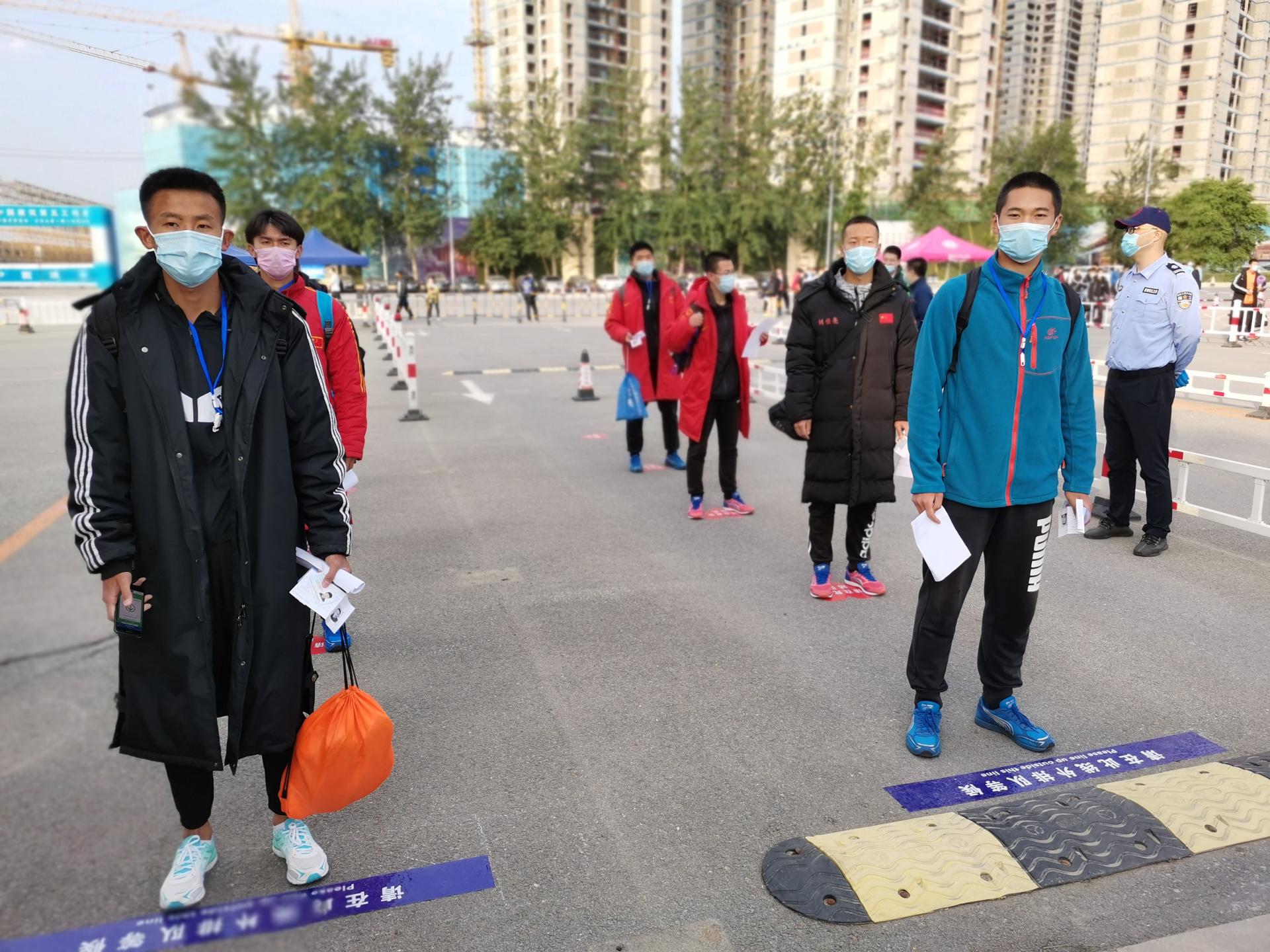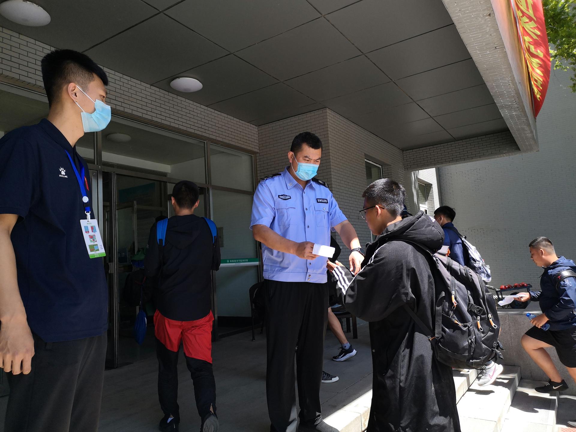 保卫处全体工作人员协同保安,一个月时间里奋战在考试安保工作的第一线,他们起早贪黑、废寝忘食,坚决守好安全第一道防线。从组织学生保持安全距离排队到查验证件、测量体温,所有人员一丝不苟,绝不放过任何带有安全隐患的考生进入校园。