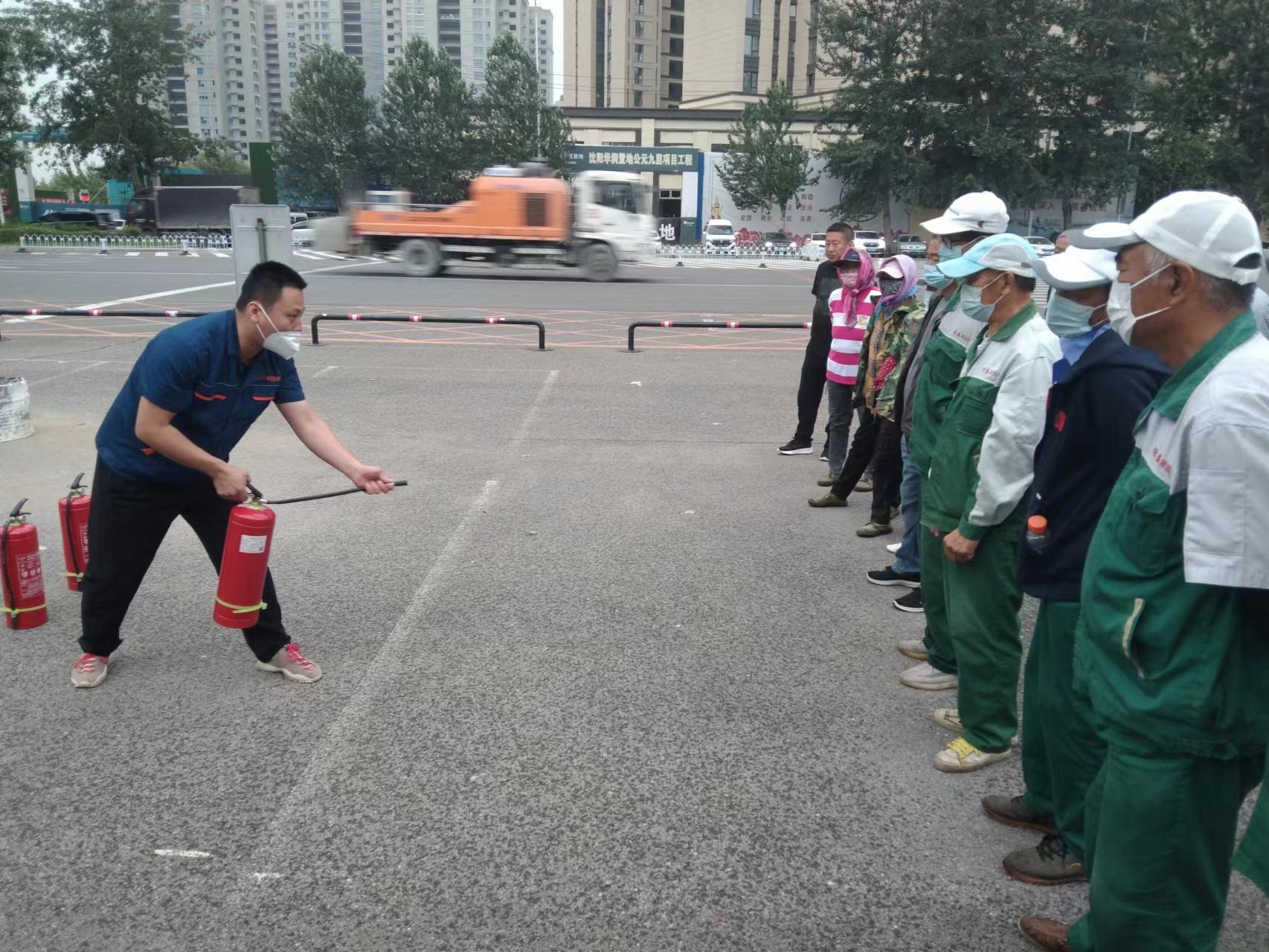 李老师针对火灾的危险性、预防火灾措施及扑救方法等进行理论培训,并重点针对灭火器的使用方法进行实操演练。