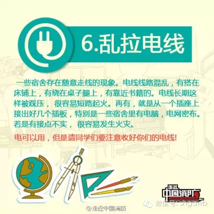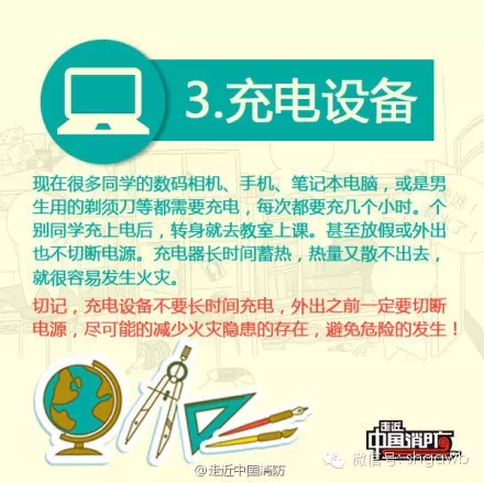 夏天天气炎热、用电量大,火灾的各类诱发因素增多, 易发生火灾事故,大家应该提高警惕。同学们要提高消防安全知识,防患于未然。提醒同学们要特别注意以下图!!!