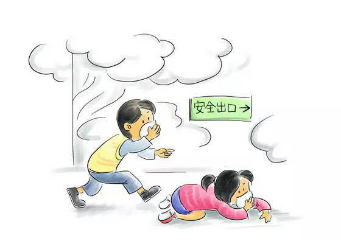 八、当发现楼内失火时,冷静观察着火方位,确定风向,并在火势蔓延前,朝逆风方向快速离开火灾区域。切勿跳楼,可进入避难层,也可采取滑绳自救法。